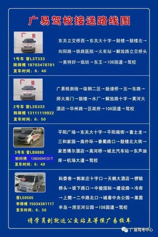為進一步提高廣易駕校的服務(wù)水平,打造一支高素質(zhì)的服務(wù)團隊,更好的服務(wù)于信賴廣易的學員朋友,我駕校根據(jù)實際及時調(diào)整接送車線路,現(xiàn)將調(diào)整后的接送車線路公布如下: